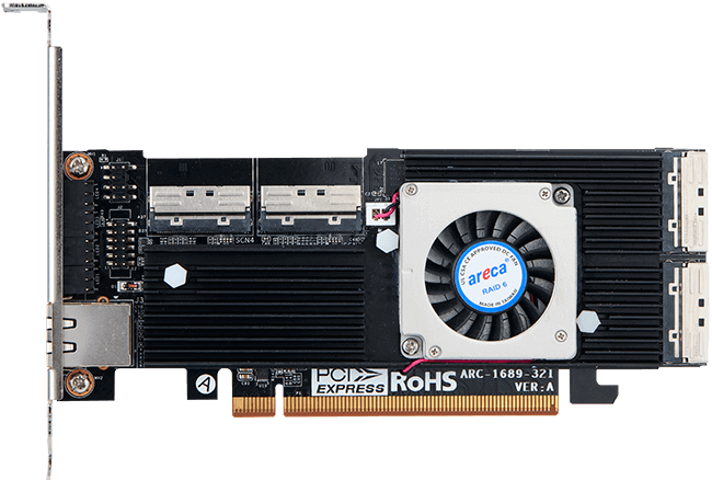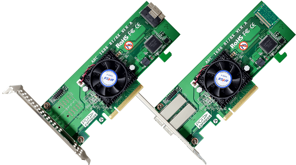 ARC-1689-8N is available immediately, shipping in July 2025. The ARC-1389 switch adapter is also available using same ARC-1689-8N PCB board without RAID configuration function on its firmware.