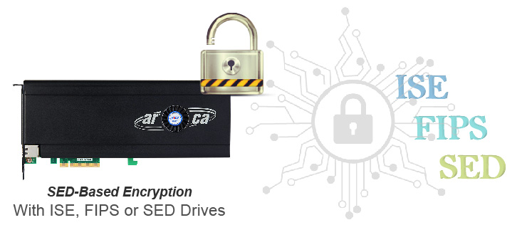 The ARC-1203-2N Cached RAID adapter firmware security function together with Self Encryption Drives (SED) secures data from un- authorized access. Protection is achieved by SED NVMe drive that automatically and continuously encrypts data on the drive without any user interaction.